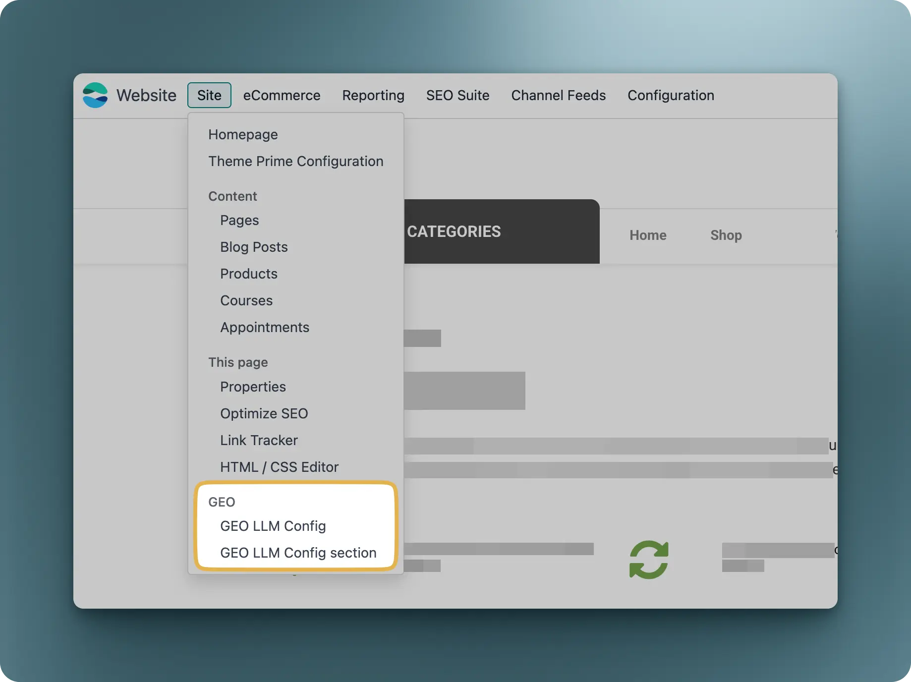Select the "GEO LLM Config" menu: