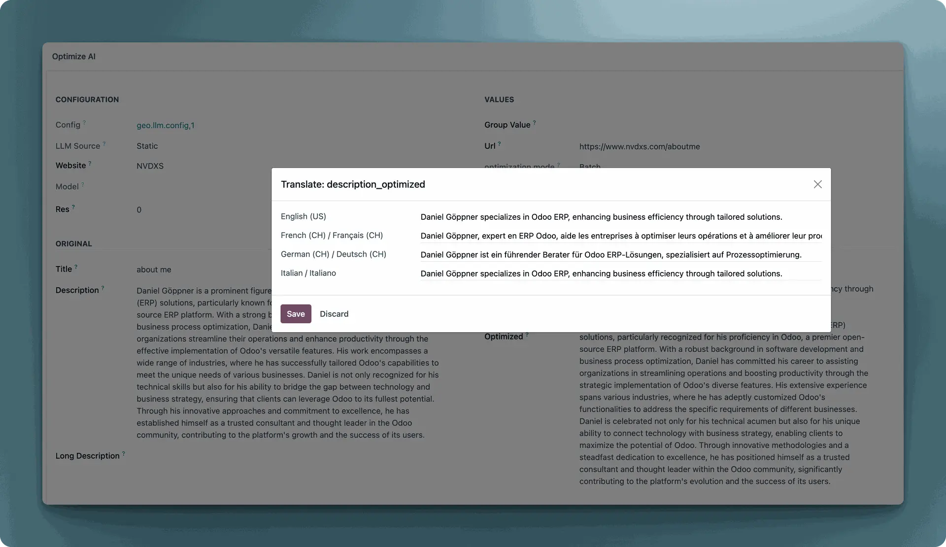 In short: GEO LLM turns content management into a fully automated growth engine for your Odoo website.